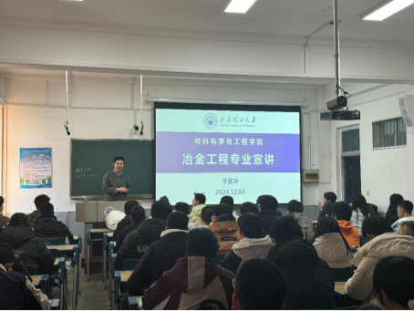 金属材料工程专业在辅导员郭洋老师指引下,乔珺威教授、张敏高级实验师、石晓辉副教授、梁慧蓉同学来到虎峪校区致明楼,给金属材料工程专业24级同学开展了主题为“金色华年,材雄德厚”的专业宣讲。本次宣讲紧扣“资深教授话专业,青年教师讲专业,学长学姐说专业”宗旨,由浅入深、简洁扼要地陈述了金属材料工程专业的专业背景、专业底蕴及未来发展。与会同学热情积极,问题不断。伴随着一道又一道问题的解答,同学们坚定了“材料强国”的信念。会后,大家一起喊出了“学金材,有未来”的专业口号。