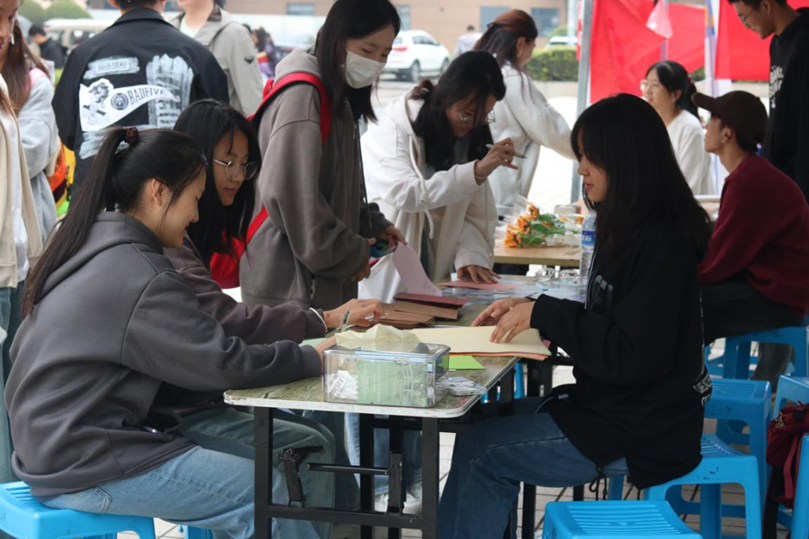 活动现场,志愿者们热情洋溢地介绍着心理健康相关知识,同学们积极响应,踊跃参与互动。趣味活动环节更是充满创意与温暖。同学们将近期的心理问题或烦心事写在便笺纸上,通过叠成纸飞机或团成纸团扔到 “情绪垃圾桶” 的方式,巧妙地释放了内心的压力。接着,他们又在小卡片上手写安慰话语,贴在展板上,传递着满满的正能量。而所有参与活动的同学,都有机会随机抽选一张写满祝福的明信片,还能领取棒棒糖、小日历或者由志愿者们亲手制作的太阳花。这些小小的礼物,如同温暖的阳光,照亮了同学们的心灵。