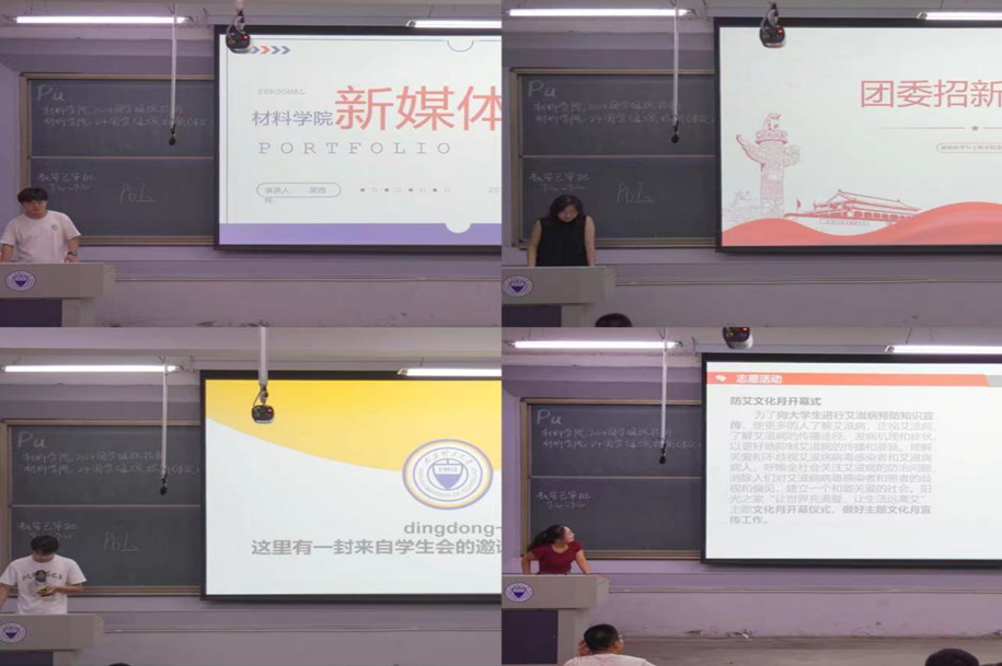 宣讲会召开当天,各团学组织负责人依次上台,以生动有趣的方式展示了各自组织的特色活动、工作职责以及成员风采。学院团委、学生会、研究生会、科协、阳光之家志愿服务中心、新媒体中心六大组织分别以“汇聚青春力量,凝聚璀璨未来”“激情与责任交汇”“研途璀璨,携手同行”“科协,一起探索科学的无限可能”“以爱之名,温暖人心”“讲述材料故事,传递理工声音”为主题进行宣讲活动,介绍了一支支青春、阳光、活力的材料青年团队,大家共同努力,都在服务的道路上不断探索,用实际行动诠释“激情点燃梦想,责任铸就辉煌”的真谛,为团学事业的发展、校园文化的繁荣和青年学生的成长贡献着智慧和力量。