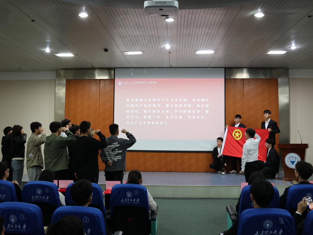 以此为契机举办了本学年新发展团员入团仪式,十位新发展团员佩戴团徽,庄严宣誓,不断进取和提升自我,在未来,时刻以团员的标准严格要求自己,刻苦学习,努力奋斗,用实际行动践行入团誓词,争做堪当民族复兴重任的时代新人。