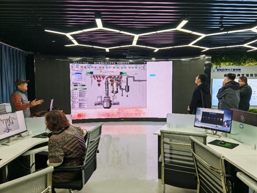 会后,陈伟院长一行随后参观了学院的金相实验室、模拟仿真实验室以及智慧教室等教学科研设施,详细了解了这些实验室的建设情况,以及它们在支持本科教学、促进学生创新能力培养以及参与各类创新大赛方面所发挥的重要作用。