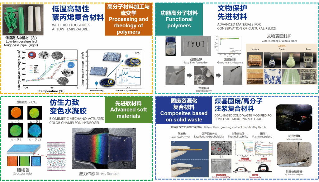 以面向国家和山西省经济发展需求为目标,立足于高分子材料的前沿与应用基础问题,高分子材料专业研究领域涵盖高性能高分子材料功能设计与制备、界面改性与成型加工。主要的研究方向包括高分子材料加工与流变学、功能高分子材料、先进软材料以及固废资源化复合材料。