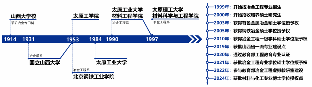 冶金工程学科是伟德国际1946源于英国的两个一级学科之一,涵盖有色金属冶金与钢铁冶金两个方向。冶金工程学科源于1914年山西大学堂设立的采矿冶金专门科。2000年开始挂靠材料加工工程学科招收培养硕士研究生,2003年获得有色金属冶金硕士学位授予权,2005年获得钢铁冶金硕士学位授予权,2010年获得冶金工程一级学科硕士学位授予权。2019年获批山西省一流专业建设点,2020年通过教育部工程教育专业认证,2021年新增冶金工程专业学位硕士学位授予权,2022年参与教育部冶金工程虚拟教研室建设,2024年获批材料与化工专业博士学位授权点。学科与企业共建有国家地方联合研究中心,共享教育部重点实验室、山西省重点实验室、山西省技术创新中心、山西省工程研究中心、山西省协同创新中心、山西省产业技术创新战略联盟、山西省研究生教育创新中心等6个省部级科研教学平台。2024年,软科世界一流学科排名冶金工程第43位。